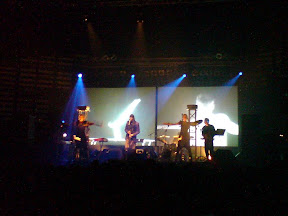 Концертът започна с леко закъснение от около половин час. Докато чакахме, през цялото време звучаха съветски маршове, които яко ми изпилиха ушите. Най-накрая започна с Българсия химн, на запис. Можеше и да се потрудят повечко и да го изпълнят наживо за 25лв билета. След него програмата продължи с последният им албум, Volk, който представлява преработки на химнове. Изпълниха химновете на САЩ, Франция, Израел, Турция, Русия, Япония (на него почти заспах), Италия и още няколко. Повечето бяха толкова преработени и променени, че ако не се прожектираше отзад флага на съответната страна, нямаше никога да позная чий химн слушам.